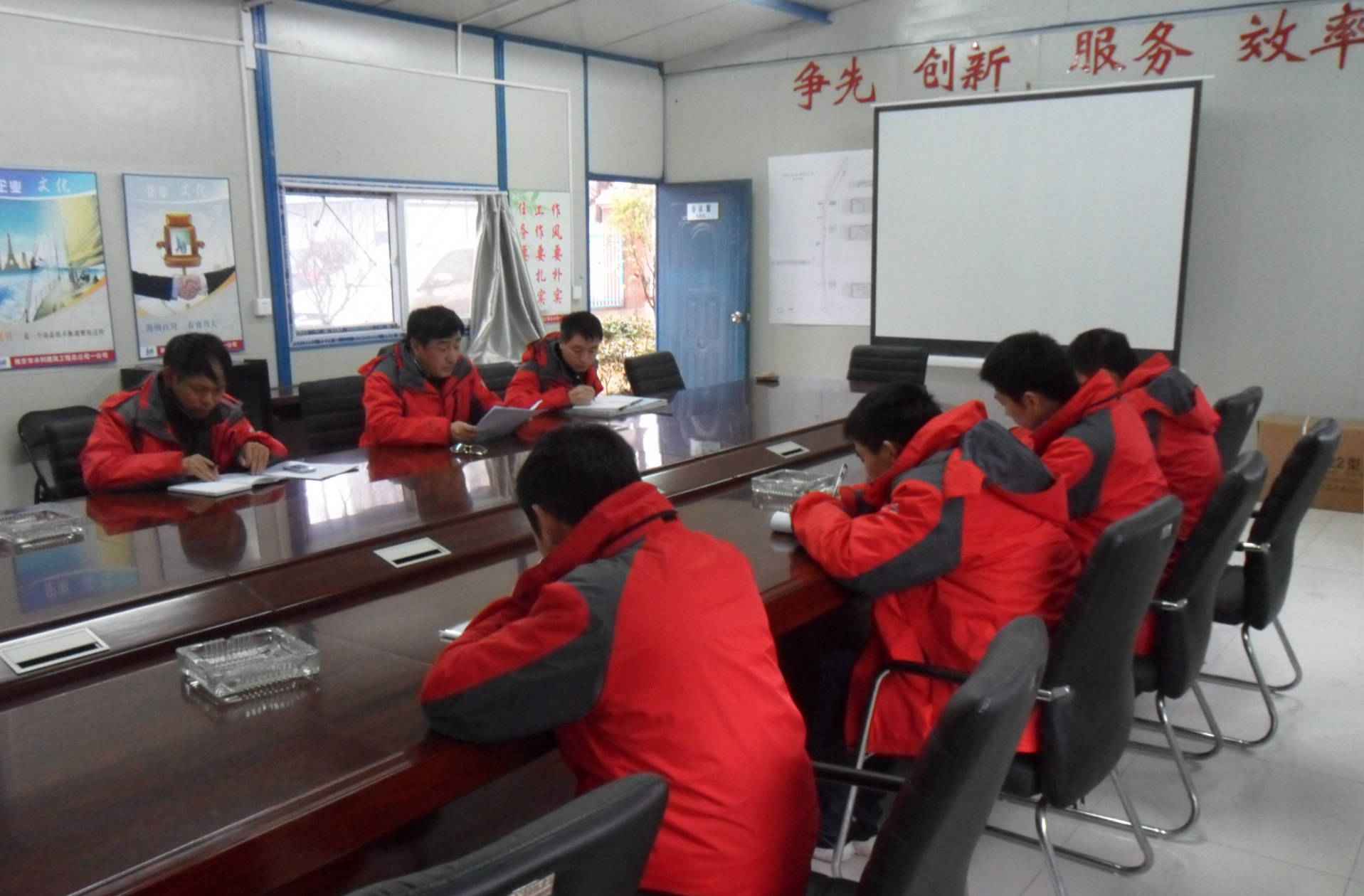 2014217日下午,南京江心洲监理部利用雨雪天停工之机,由项目金总监带领监理组全体人员进行了技术学习交流活动。