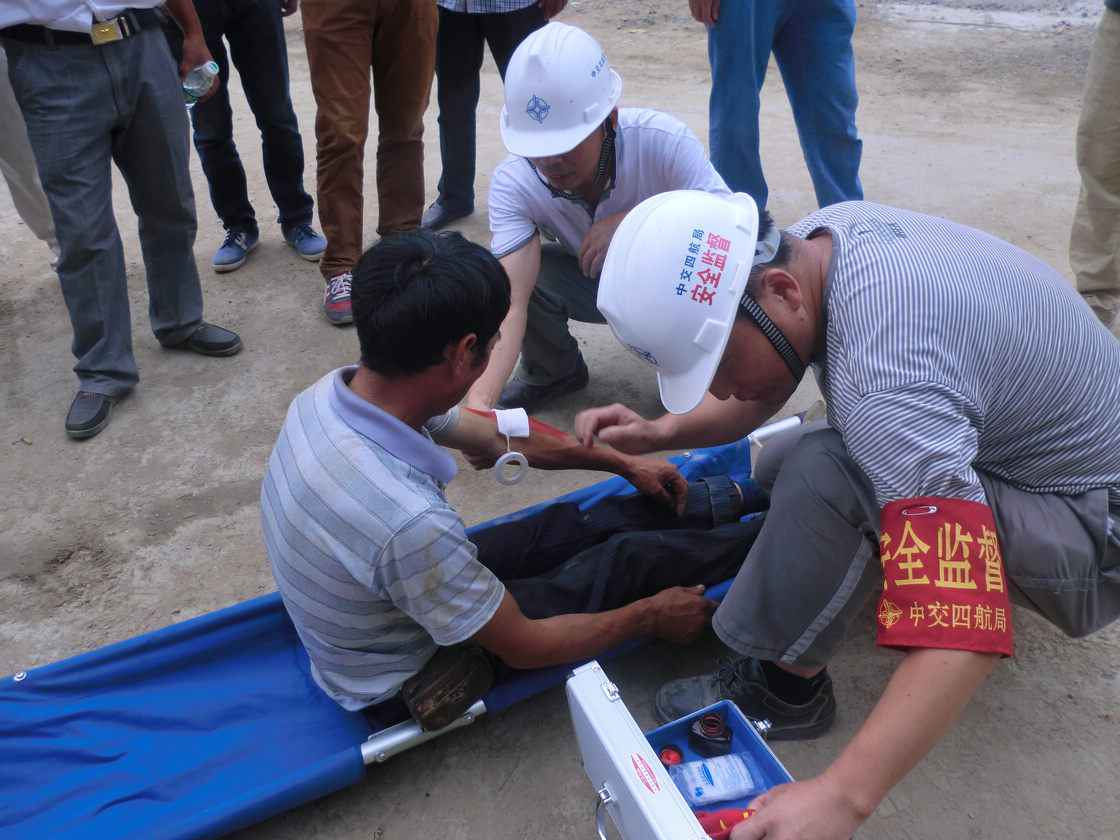 本次应急救援演练,从发现人员受伤到进行简单处理后抬上救护车,整个过程历时仅10分钟,及时有效的控制了人员的伤势,为人员的后续救治工作赢得了时间。此次演习检验了项目应急救援小组应急救援的能力,确保有突发事件发生时有能力对事故进行有效地控制和处理,为工程安全生产提供有力保障。(周监清)