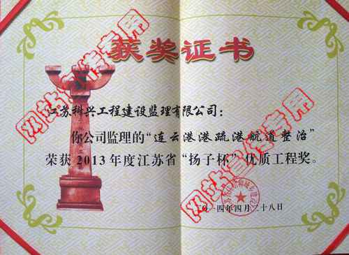 > 企业荣誉 > 连云港疏港航道工程“扬子杯”