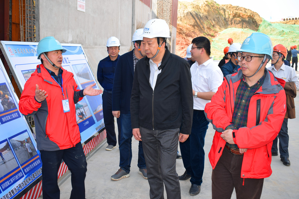 2018年3月28日下午,江苏省交通运输厅航道局董志海局长率领各市航道处相关人员视察秦淮河航道整治项目。公司徐志峰总经理向董局长一行汇报了秦淮河项目品质工程创建、平安工地建设、工程进展等监理工作情况,张友利副总经理及黄建红总工程师现场陪同检查。