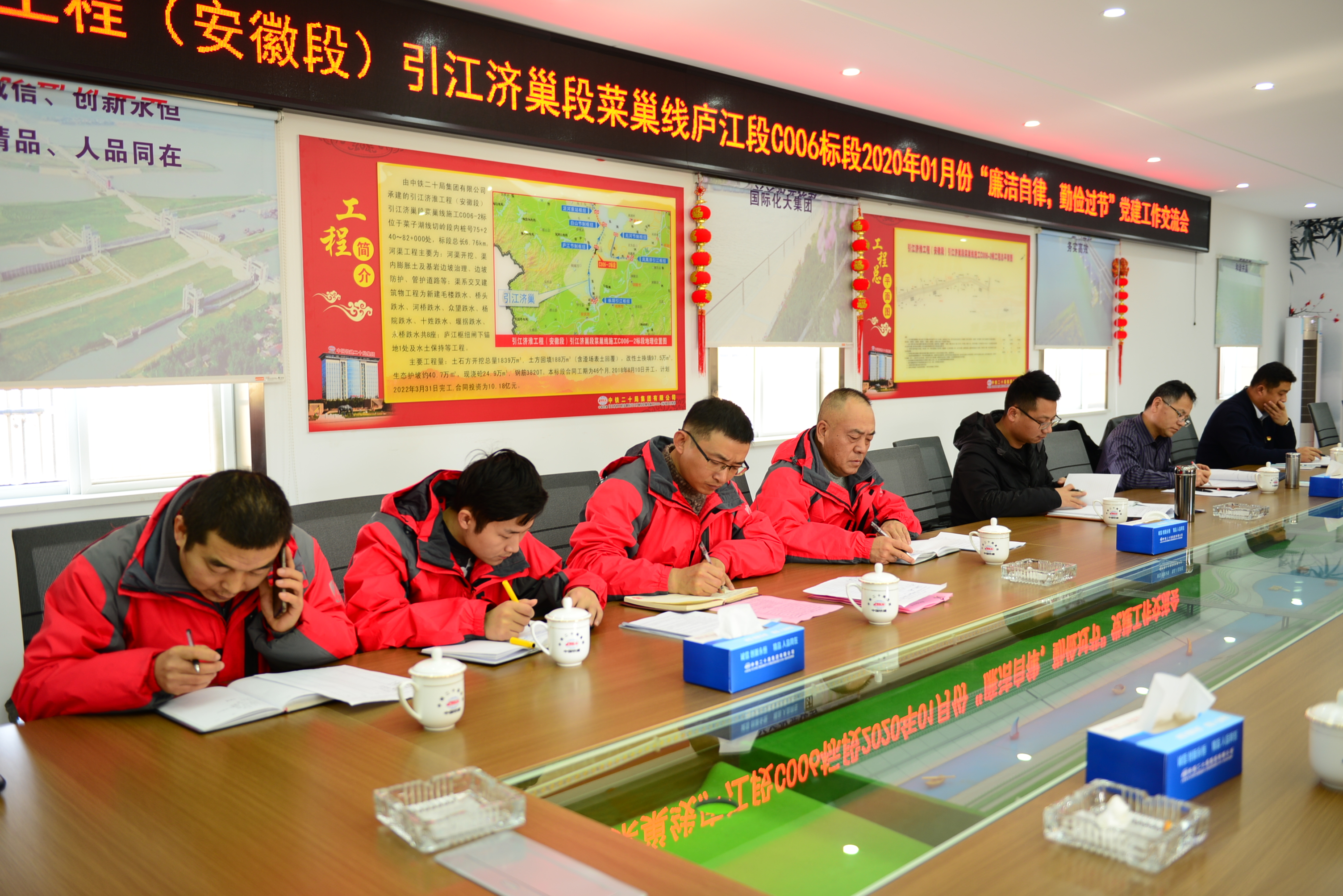 春节将至,为正确引导参建各方广大党员干部牢固树立法纪观念,增强廉洁从业意识,自觉抵制各种不正之风,将公司严明春节期间有关纪律要求作为巩固作风建设成果的重要举措,营造一个廉洁自律、风清气正、平安祥和的节日氛围,2020年1月7日下午,江苏开云(中国)引江济淮C006标监理部联合引江济淮集团庐江建管处、中铁十局C006-1标及中铁二十局C006-2标项目部党支部,在中铁二十局项目部组织开展了“廉洁自律 勤俭过节”党建工作交流活动。
