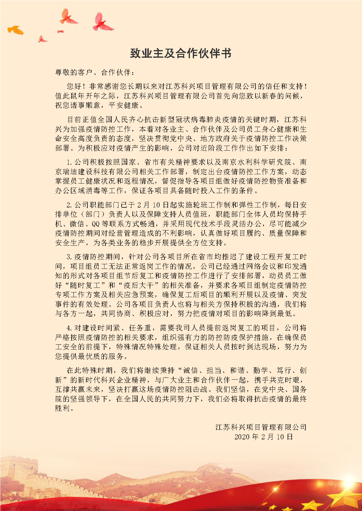 当前位置:首页 > 企业新闻 > 致业主及合作伙伴书