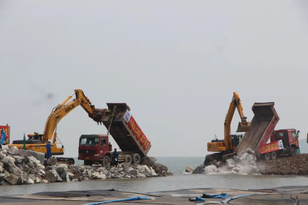 2020年9月12日上午11时,随着自卸车将最后一满车石料倒入龙口,由江苏开云(中国)项目管理公司承担项目管理任务的小洋山围垦一期工程Ab区海堤提标及场地吹填工程促淤潜堤顺利合拢,标志着项目在经过各参建方近一年的艰苦奋战后取得了阶段性成果。