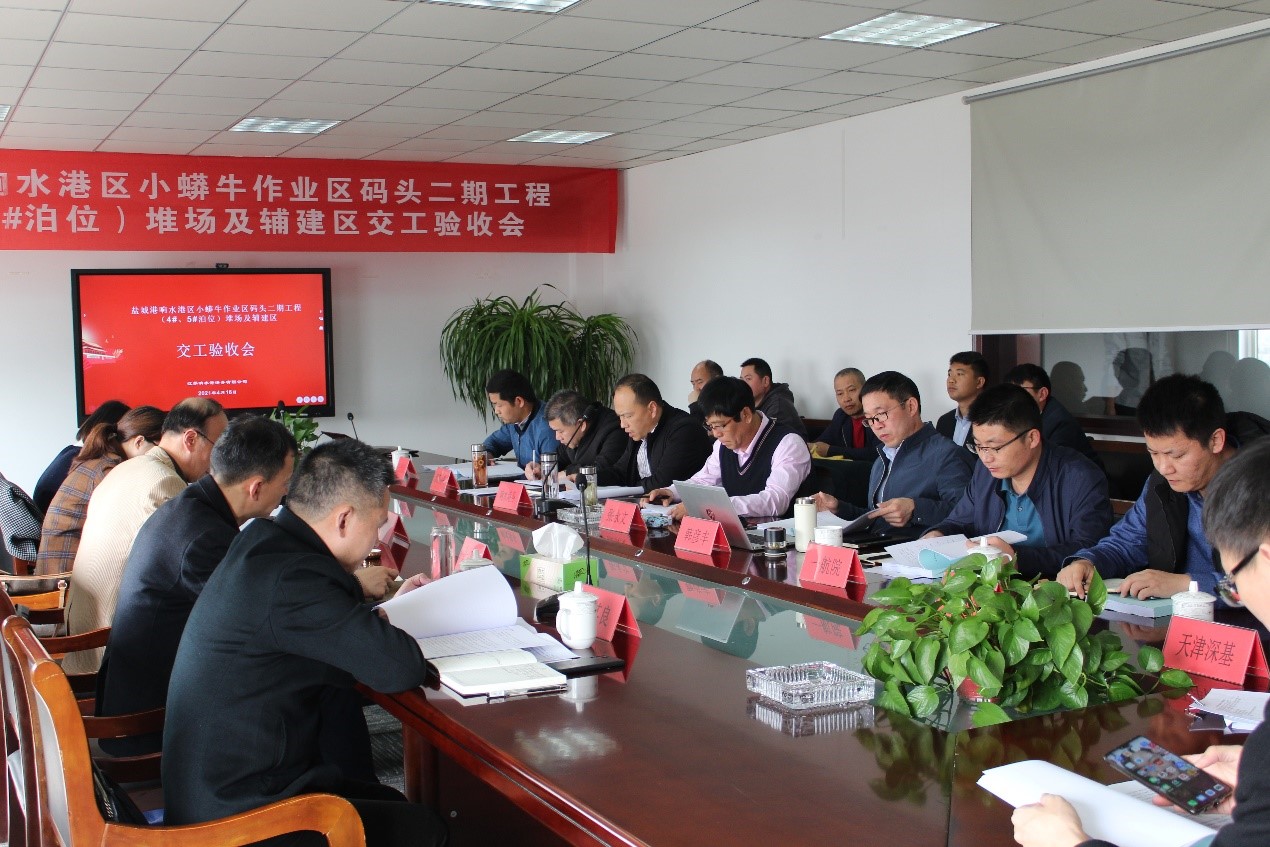 交工验收小组首先到现场进行了实地查看,项目部负责人在现场向验收组作出了简介和汇报。现场查看结束后,在响水港务三楼会议室主持召开交工验收会,总承包单位、施工单位、监理单位、设计院等各个部门在会上分别进行了总结报告和发言,最终该项目顺利通过了此次验收。