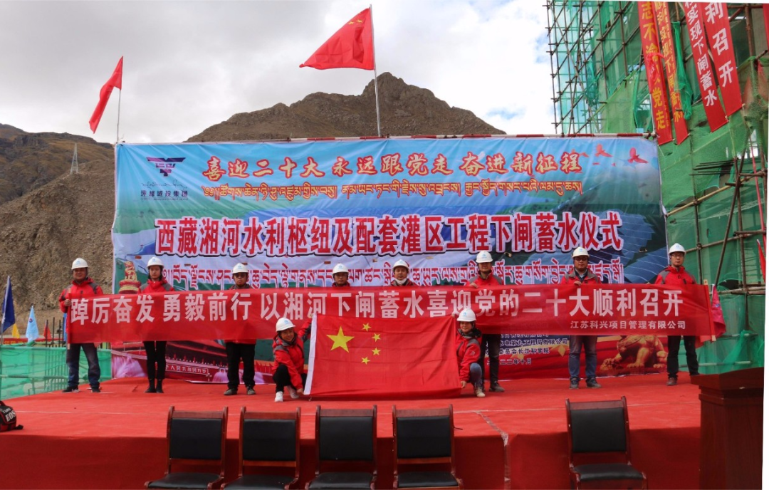 2022年10月12日15时,随着现场总指挥一声令下,公司承监的西藏湘河水利枢纽工程导流洞工作门在参会嘉宾、参建单位及当地农牧民群众代表的共同见证下徐徐降落,标志着工程顺利实现下闸蓄水目标,工程建设向投产发电迈出坚实一步,献礼党的二十大!