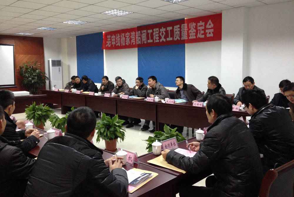 2014年1月19日省质监局、省航道局及市质监站、市航道局联合扬州市、镇江市、南通市、苏北航道处专家在杨家湾新建闸管所对杨家湾土建标、房建标、闸阀门标、启闭机标、电气标、标志标牌进行交工验收现场和资料检查。(杨家湾监理组 原素萍)