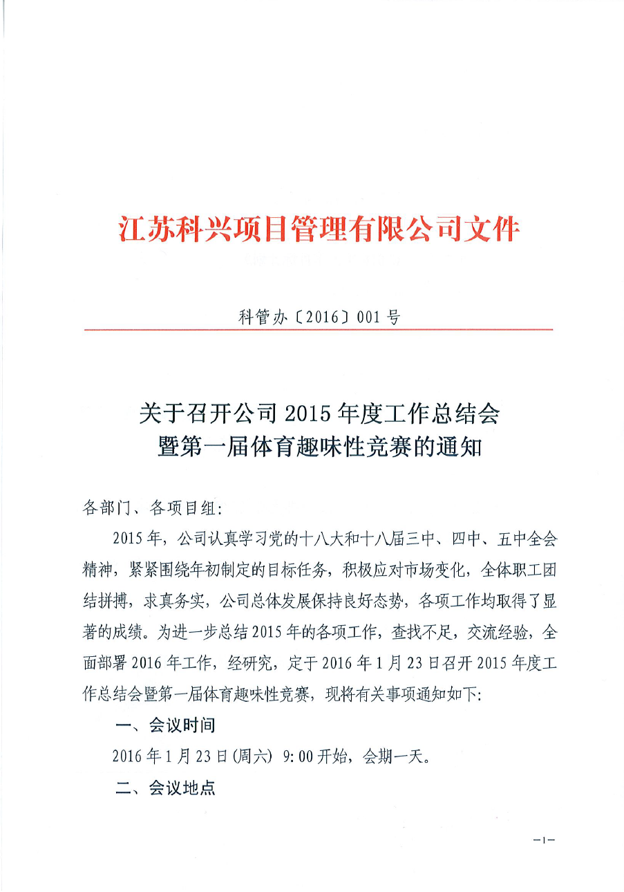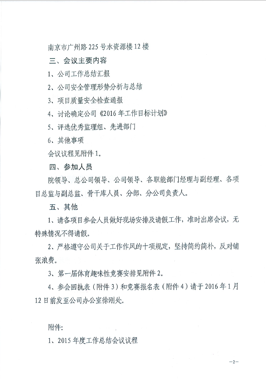 关于召开公司2015年度工作总结会暨第一届体育趣味性竞赛的通知
