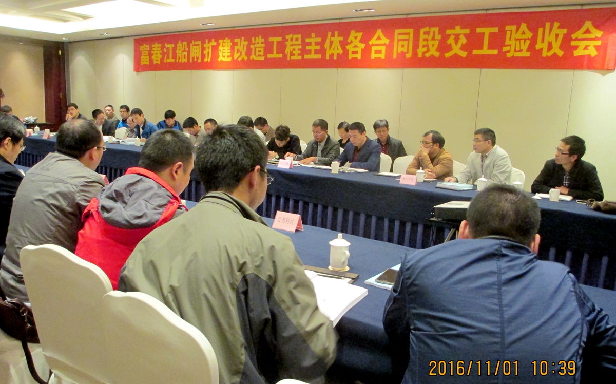2016年11月1日,富春江船闸扩建改造工程顺利通过交工验收。参加验收会议的有浙江省交通运输厅、省港航管理局、杭州市交通运输局等有关单位代表。验收小组听取了建设工作汇报及交工质量评定备案意见,在内外业检查后,认为主体部分共6个合同段计15项单位工程质量符合要求,档案资料齐全,同意该工程通过交工验收。 验收小组对富春江船闸参建各方在项目建设中付出的辛勤努力和坚持创新、精益求精的精神给予了高度赞扬与肯定。建议应进一步加强新材料、新工艺、新技术及项目管理经验的总结,申报国家级奖项,同时为国内碍航闸坝运行工况下船闸改扩建类似工程提供借鉴。 |