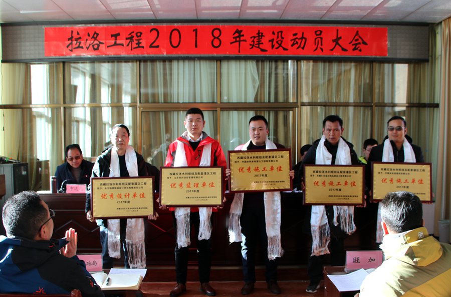 2018年3月08日,西藏日喀则拉洛项目召开了2018年的工程动员大会。 新的一年新的气象,西藏自治区水利厅副厅长热旦,西藏自治区拉洛管理局杨军局长发言总结了2017年的工作,布置了2018年的目标“抢进度,保质量”。 会上杨局长对监理部在2017年的工作给予了肯定,特别是在冬季停工期间还加班加点坚持工作给予了表扬,并授予公司为“2017年优秀监理单位”称号,监理部徐总监与杨军局长签订了安全责任书并表态发言:一定坚持为业主服务,发扬开云(中国)精神,管理好工程项目,坚决完成2018年的工作目标。(拉洛监理部) |