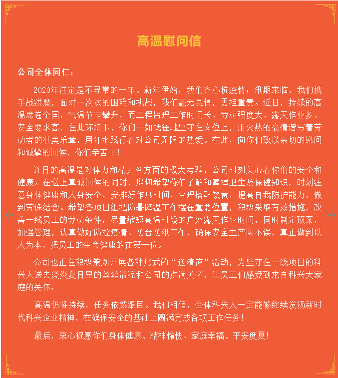 当前位置:首页 > 企业新闻 > 高温慰问信
